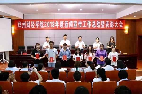 党委宣传部副部长杨建伟宣读表彰决定 杨建伟宣读了《关于表彰2018年度新闻宣传工作先进集体和先进个人的决定》。会计学院、现代物流与管理学院、信息工程学院、校团委荣获“新闻宣传工作先进单位”;电子商务学院网站、会计学院网站、机电与汽车工程学院网站、信息工程学院网站、就业指导服务中心网站、党委组织部(党校)网站、网络中心网站荣获“优秀二级网站”;郑州财经会计风华(微信)、郑财管理青年汇(微信)、郑财之家(微信)、郑财学工(微信)、郑州财经学院(微博)荣获“优秀新媒体”。刘燕燕等72名师生荣获新闻宣传工作先进个人。出席领导为获奖集体和个人代表颁发了奖牌和荣誉证书。